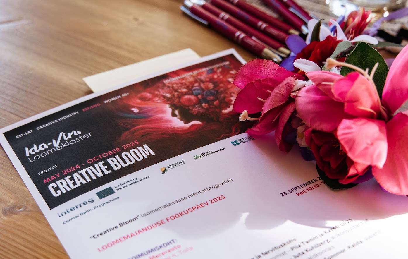 23. septembril 2025 toimus Toila Mererestos inspiratsiooni ja positiivset energiat täis Loomemajanduse Fookuspäev, mis pani väärika punkti Ida-Virumaal ellu viidud mentorprogrammile „Creative Bloom“. Päevast kujunes südamlik ja pidulik kokkuvõte 18 kuu pikkusest teekonnast, mis aitas kümnetel naistel oma loomingulised ideed ettevõtluseks vormida.